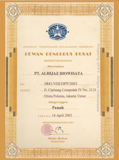 Sebagai komitmen legalitas perusahaan dalam melayani pelanggan dan jamaah secara aman dan profesional, saat ini perusahaan telah mengantongi izin resmi dari pemerintah melalui kementrian pariwisata, lalu izin haji khusus dan umrah dari kementrian agama. Selain itu perusahaan juga tergabung dalam komunitas organisasi travel nasional seperti Asita, komunitas penyelenggara umrah dan haji khusus yaitu HIMPUH dan organisasi internasional yaitu IATA